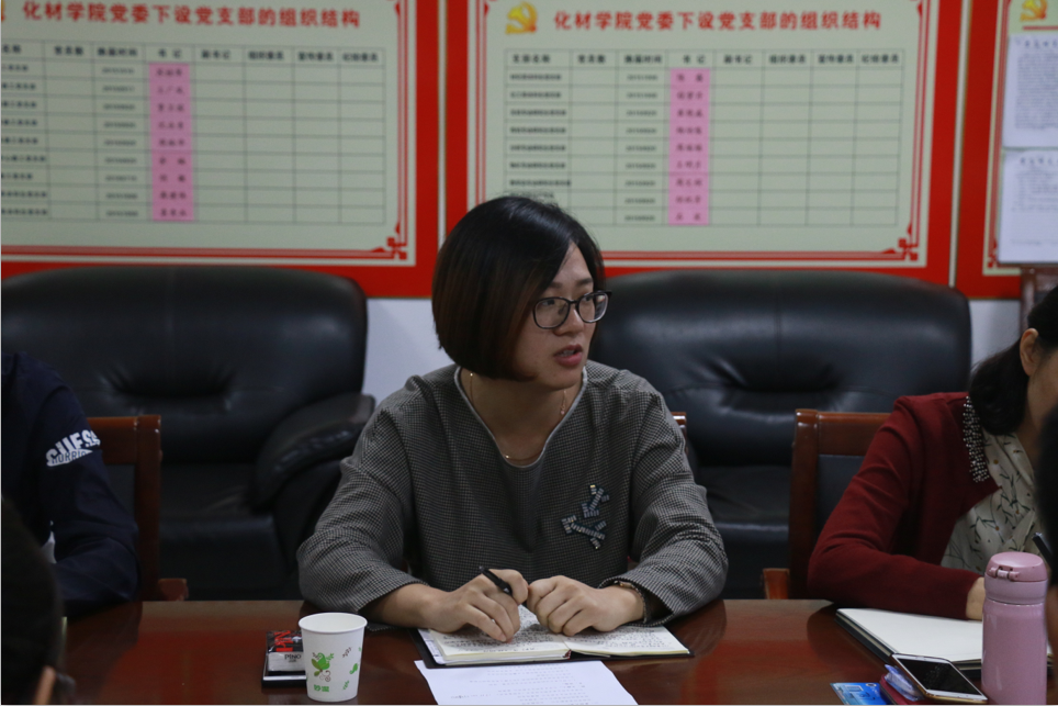 本网讯(蒋建伟)为扎实推进“两学一做”学习教育常态化、制度化,认真落实好“讲政治、重规矩、作表率”专题教育活动相关要求,9月29日,化学系本科生党支部开展“作表率,我们怎么办”专题讨论会,公司党委副书记余妍霞、公司党委组织部党校办主任朱琳以及支部全体党员参加会议,会议由党支部书记蒋建伟主持。