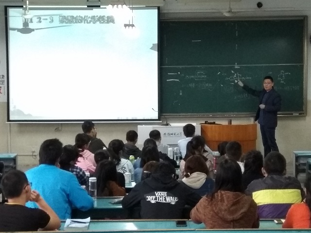 本网讯(英国正版365官方网站 邱露纯)10月11日上午,英国正版365官方网站张新明老师在2010308教室为2016级材料化学1班全体同学讲授了一堂精彩的有机化学公开课,院督导组、部分专业教师及辅导员参与听课。