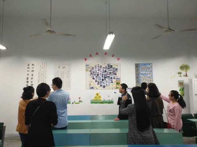 10月20日晚上,公司党委副书记余妍霞、副经理张小俊带领公司辅导员对公司各专业年级的教室文化氛围布置进行现场验收。各专业同学精心准备,充分结合专业特色,设计自己班级的文化氛围。