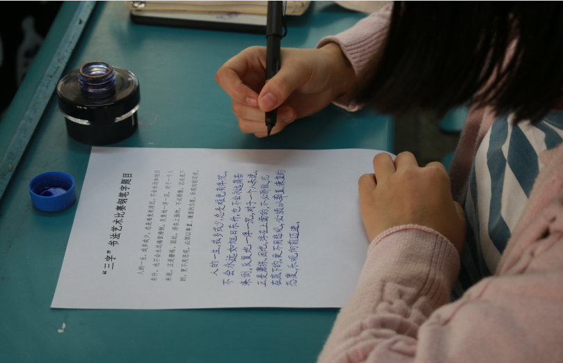 笔尖墨舞动,刚劲字飞扬。钢笔字是同学们接触最多,了解最深的。“反复地一浮一沉,对于一个人来说,正是磨练。”在极富哲理的语句中,同学们细心的抄写,是对人生哲理最好的解答。在抄写之前,许多同学细心地在草稿纸上预写了好几遍,他们的认真和专注淋漓尽致的展现出了化材人的专注性格。