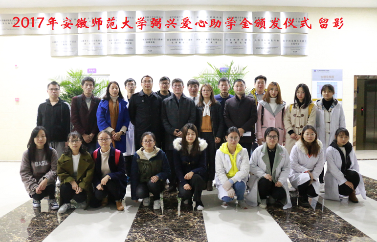 仪式伊始,罗时忠老师宣读了弼兴爱心助学金颁发决定及受助员工名单。薛琦先生向受助同学颁发助学金并合影留念。2015级化学非师范专业的代娆同学作为受助员工代表发言,表示“人的出生无法改变,但是人要为自己的未来努力奋斗。在国家和社会爱心人士的捐助下,我们一路坚定前行,努力拼搏。我们应当怀揣一颗感恩之心,用自己所学回报社会,同时承担责任,将爱心传递下去。”同学们将感恩的心化为热烈的掌声,向薛琦先生和余化鹏女士表达了浓浓的谢意。