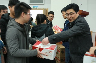 公司领导及各系负责老师亲自为考研学子发放牛奶等营养品。天气虽冷,但是公司给予同学的关爱是暖的。同学们纷纷表示,有了公司和老师们的关爱,自己将会以更加饱满的精神状态去努力拼搏,不辜负公司和老师的期盼。