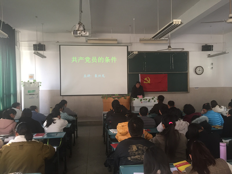 袁兴龙老师开门见山,从党章上对申请入党条件的规定入手,分别解读了每一句话的内在含义,让学员对入党条件有了具体了解。随后袁处长又分条解读党员基本条件,重点强调党员必须全心全意为人民服务,永远是劳动人民的普通一员。再一次让所有学员感受到了党员的服务性,奉献性。接着袁处长非常详细的讲述了党员的八项义务以及八项权利,对每一项都结合实例进行了具体分析,最后总结说明党员的权利和义务是一个相互联系,不可分割的整体,想要享受权利必须履行义务。培训最后袁处长用“没进党的门,先做党的人”勉励所有入党积极分子对自己严要求,争取早日加入到党员的行列中来。