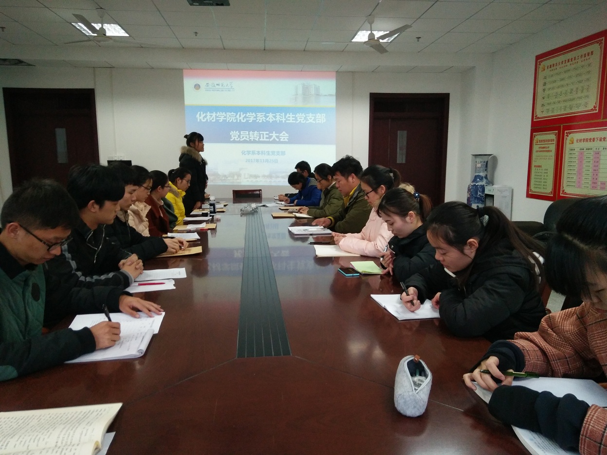 本网讯(英国正版365官方网站 蒋建伟)11月25日下午,英国正版365官方网站化学系本科生党支部召开预备党员转正大会。支部全体党员和预备党员参加本次会议。化学系本科生党支部书记蒋建伟主持会议。