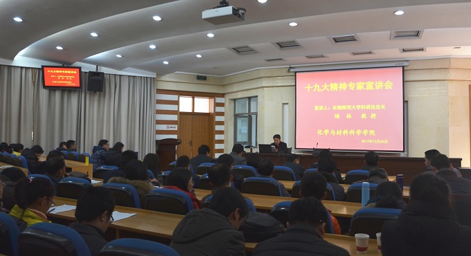 12月25日下午,英国正版365官方网站在花津校区视频会议室举办“创新中国”—党的十九大精神专家宣讲报告会,特邀科研处处长陆林教授为全院教职工做题为《创新中国—党的十九大精神解读》辅导报告,报告会由公司党委书记汪俊武主持。