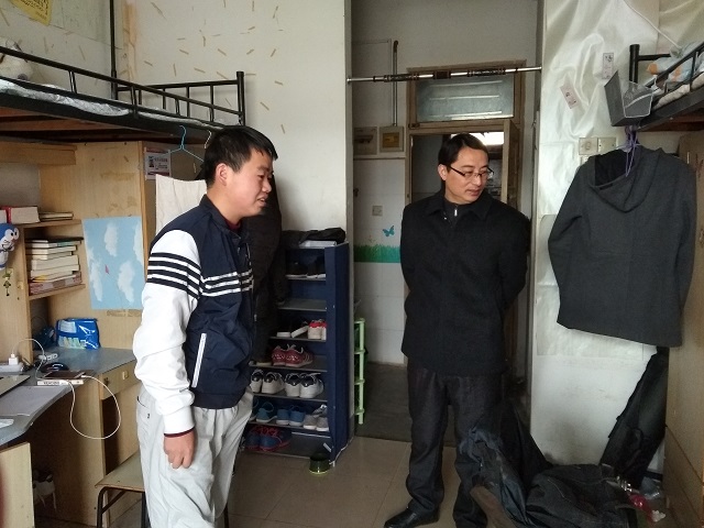 在走访过程中,公司领导和辅导员老师重点检查了宿舍的安全、卫生情况。开学之初,公司寝室整体情况较好,少数寝室在卫生和安全方面存在问题,领导老师当面提出了整改意见,力争做到安全问题“零”隐患。