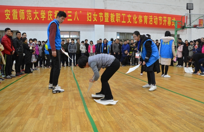 3月7日下午,在花津校区北侧体育馆,公司精心选拔老师参加校工会组织的“庆三八教职工文化体育活动节”开幕式活动,活动由“和谐师大抬幸福”、“借桥过河新征程”两项组成,赛场上,参赛教师齐心协力,团结一致展现出良好的团队精神,彰显化材人积极向上的精神面貌,经过紧张精彩的比赛,最终荣获团体二等奖。
