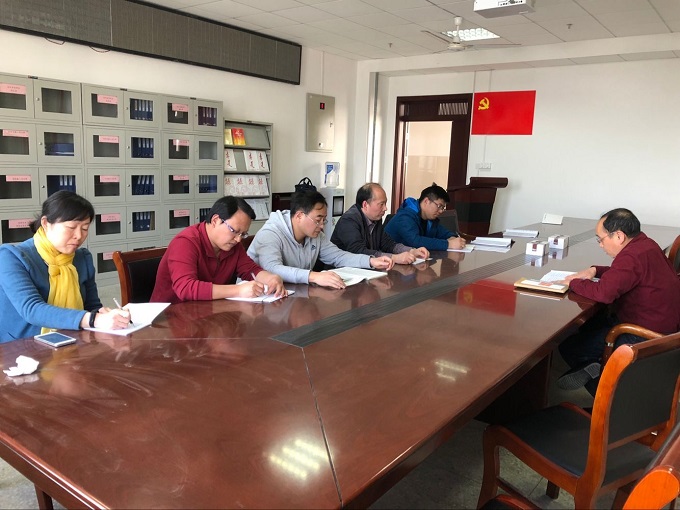 2018年4月9日下午,公司党委委员,实验中心主任唐业仓同志,在理科实训大楼707党员活动室,为支部党员宣讲2018年两会精神。实验中心教工支部党员同志参加了本次活动。