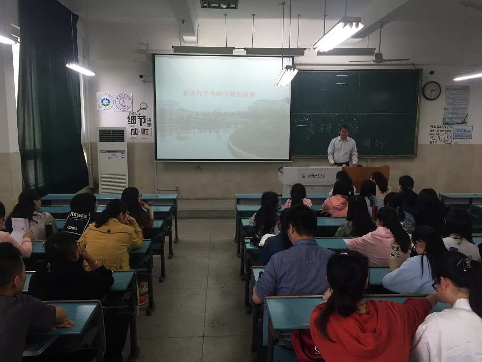 本网讯(英国正版365官方网站 蒋建伟)又是一年考研动员季,4月12日下午,2015级化学(非师范)专业在行知楼1号楼302教室举行了“考研之路,你我同行”考研动员会。研究生公司副经理、公司教授商永嘉老师受邀参加,并给同学们做了考研主题报告。成功考取中国科学技术大学研究生的2014级化学非师范专业李航宇也受邀参加,与同学们分享了考研之路上的宝贵实战经验和心得感悟。动员会由辅导员蒋建伟老师主持。