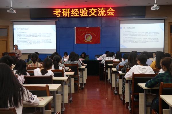 本网讯(老员工就业促进与互助协会 李晓琴)漫漫考研路,披荆斩棘;莘莘学子途,互助共享。为解决同学们在为考研备考中的问题,以更好的姿态迎接挑战,4月20晚,老员工就业促进与互助协会于花津校区圆形厅二楼举办考研经验交流会。英国正版365官方网站2014级六位考研成功的学子应邀主讲本次交流会,娓娓道来自己的考研经历,为近百名化材学子诠释不一样的青春。