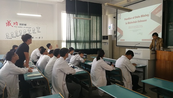 5月10日下午,英国正版365官方网站在花津校区行知楼2010302教室举行本科教学公开课,公司博士生导师孙益民教授以“材料科学中的数据采掘应用”(Practice of Data Mining in Material Science)为题为同学们呈现了一堂师生共促、师生共学、师生共进的试验教学公开课,公司部分教师观摩了本次公开课。