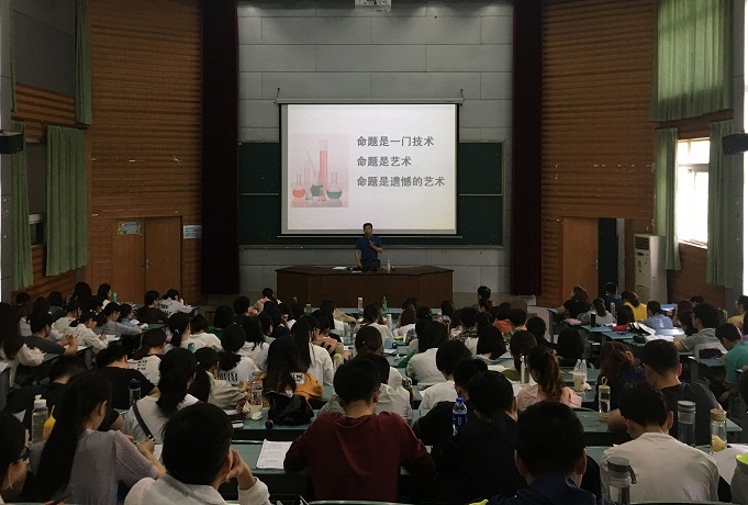 讲座伊始,同学们对严增进老师的到来表示热烈的欢迎!然后严老师主要围绕“命题是一门技术”、“命题是艺术”、“命题是遗憾的艺术”三个方面的讨论,为广大师生们讲述自己对中学化学学业评价以及中学化学命题的看法。严老师首先用一个互动提问引入话题,向同学们详细介绍了制定考试大纲、确定双向细目表、制定编题计划等命题的八大原则,将在场的同学们带入情境。而后,在“命题是一门技术”中,他通过客观题选项的设置以及问题情景的设置,向同学们展示了命题要有技术。并且通过剖析一个简单的化学实验——玻璃钟罩里长短蜡烛谁先熄灭,给同学们展现命题中的艺术;最后严老师总结了自己以前设计过的题目,积极启发、引导同学们广泛参与讨论,最终通过自己在命题中的亲身经历,告诉同学们在命题过程中也会存在一定的缺憾。严增进老师在本次讲坛中,围绕“中学化学命题技术”,从不同的视角给在场的老师和同学们上了生动而又别开生面的一课,娓娓道来,引人入胜。同学们课上认真听讲,积极参与互动,广泛参与讨论,纷纷表示打开了眼界,收获了知识。