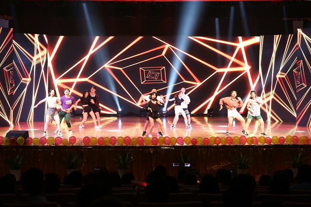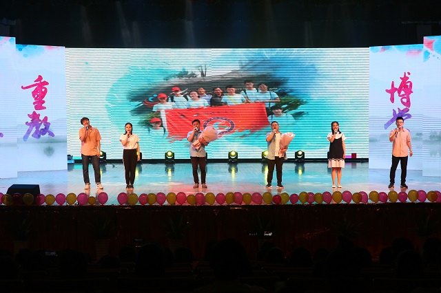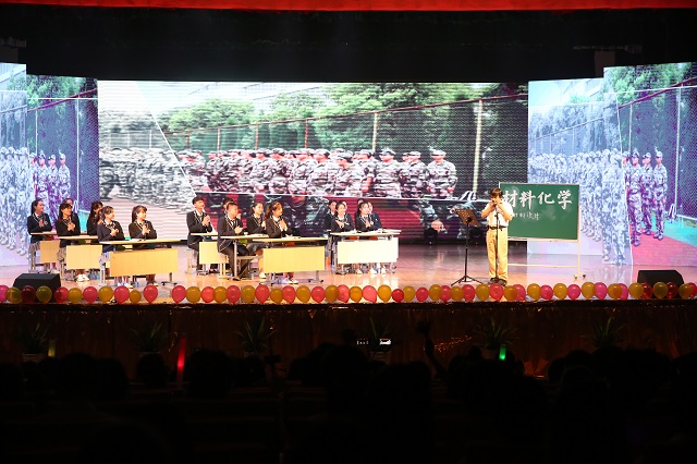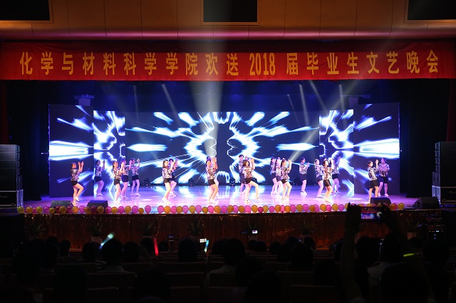 芳华如诗,青春正好,荣菁秋、盛梦婷等同学带来的歌曲串烧《芳华》用经典的旋律描述了青春的诗和远方。五月栀子留白,六月你我离散,由员工会综艺队推送的情景剧《栀子花开》绘出了一幅缤纷的生活画卷,用老员工活的点点滴滴勾起了毕业生的离别思绪。紧接着教职工合唱《国家》更是激起了同学们的家国情怀,表达了公司教师对毕业生投身报国的殷切期望。舞动奇迹、秀出活力,由任杨、孟靖洁等同学带来的舞蹈串烧展现了化材学子的青春激情,动感的舞姿把晚会又推向高潮。