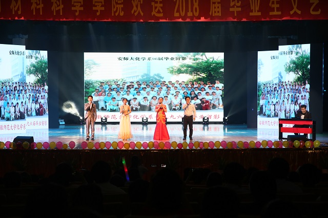 朗诵《颂别》、毕业微视频《曾“津”,我们在“赭”里》和古典舞《浓情淡如你》将毕业生对母校的眷念不舍用最美好的画面呈现出来,毕业班辅导员程紫丹、王国良与毕业生代表合唱的《祝福》将离情深藏,将祝福送上,祝愿毕业生走向更美好的远方。师生合唱的《岁月》,歌曲悠扬隽永,带领观众回味了化材的“岁月”悠长。长亭外,古道边,潜岳苍苍,江淮汤汤,在《“化”别师大》的美妙歌声中,本次毕业生晚会圆满落幕。