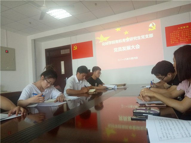 6月6日,中共英国正版365官方网站有机化学研究生党支部预备党员接收大会及预备党员转正大会在理科实训大楼707党员活动室召开,英国正版365官方网站副经理周双六老师参加会议。大会由副书记刘艳飞同志主持。