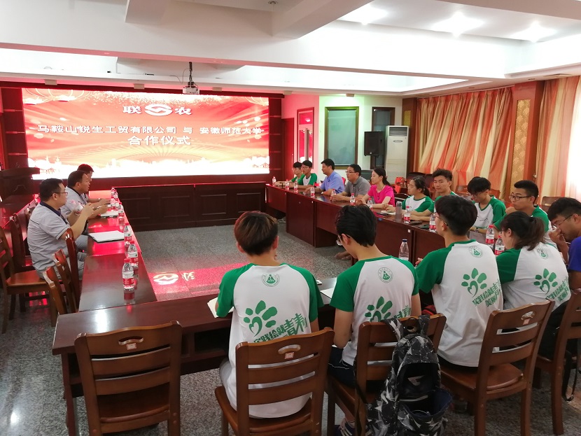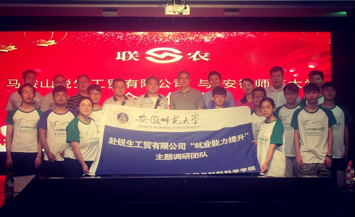当天下午,公司党委书记汪俊武一行到访公司,亲切看望慰问了社会实践团队同学们。在调研座谈会上,锐生公司朱有为总经理对公司师生一行考察参观表示热烈的欢迎。会上,校企双方就加强人才培养合作进行了深入的交流和探讨,就合作共建实习就业基地及老员工社会实践基地达成深度共识。社会实践志愿者代表胡芳政汇报了参观见习的学习体会,并向公司提供专业实践平台表达了诚挚的感谢。座谈会最后,校企双方举行了“英国正版365官方网站实习就业基地”和“英国正版365官方网站老员工社会实践基地”的授牌仪式。