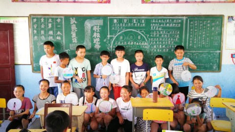 “银烛秋光冷画屏,轻罗小扇扑流萤。”小老师在黑板上写下这句耳熟能详的古诗。孩子们的目光却并没有聚集在黑板上的古诗上,而是跟随着老师手中的美丽团扇移动。“现在正值盛夏,我们可以吹空调和电扇,那么你们知道古人是怎么在夏天消暑的么?”老师问道。“用扇子!”孩子们争着答道。接着,老师从团扇的历史、分类讲到材料和制作方法。深入浅出地将团扇的相关知识带给了大家,并且给每位孩子发放了一个空白的团扇,鼓励大家创造出属于自己的团扇。孩子们执笔于上,发挥自己的奇思妙想,让笔尖流淌出属于自己的色彩。