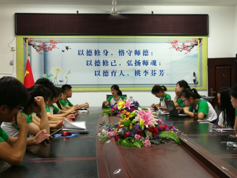 当晚,每天一次的例会在会议室中展开。会议中首先由队长对一天的工作进行了总结,并详细讲解了后面几天的日程安排。由于上课材料的问题,将课程进行了微调,具体地安排了每个任课老师后面的课程安排。并请了下午上课的两名队员谈了谈自己的代课感想。两位队员都是初次代课,都对课堂感触良多,感慨教学的不易。其中尤其是进行作业辅导的队员,由于带的是低年级员工,对纪律没有明确的概念,部分孩子较为吵闹。对此,队长强调了课堂纪律要严肃对待,保持好基本的课堂秩序。然后每一位队员轮流阐述了自己当天的工作与感悟,以及对明天工作的想法。大家的思考在交流中得以碰撞,摩擦出灵感的火花,找寻到自己的不足与待改善之处,进行一定的反思与改进。