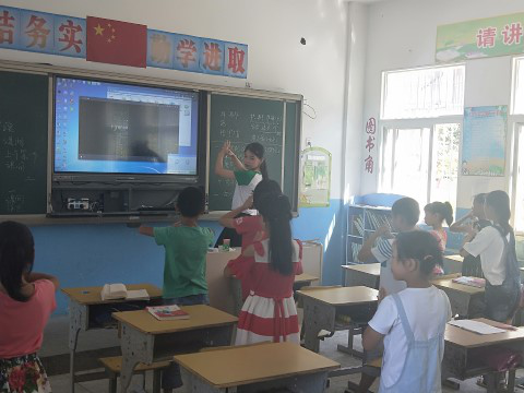 本网讯(通讯员 马进文)7月17日,经过上午的招生与宣传,下午两点半,英国正版365官方网站英国正版365官方网站赴安庆北中实践团队于安庆市太湖县北中镇北中小学正式开始“七彩课堂”教学活动。17日下午共开设了两个班,每个班两节课。分别是作业辅导与手语舞《我和你一样》。首先是一个队员带的作业辅导,他在课堂上将上下课的作息时间讲了一下,着重强调了安全方面的问题。安全无小事,该名队员的做法显然是十分正确的。然后该同学让孩子们自己做作业,有问题或者疑惑随时提问,他也是立刻过去进行答疑解惑。课堂上安安静静,氛围良好。另一位同学进行的是手语舞《我和你一样》的教学。首先是播放了一遍该手语舞的视频,将孩子们的注意力吸引了过来。效果十分显著,孩子们都对这个新奇的东西表现出了浓厚的兴趣。之后队员便将动作分解,逐一地教给孩子们。课堂上放眼望去,孩子们挥舞着稚嫩的手臂,充满了欢乐的气息。那认真学习的模样俨然已经忘掉了天气的炎热。其实手语本来只是用于聋哑人的交流,但是很多人其实是歧视聋哑人这样的残疾人的,不过正如这个手语舞的名字:我和你一样。其实大家没有本质上的区别,更不应该有所谓的歧视。而这个手语舞教学正是让小孩子们从小便知道大家都一样,不去歧视聋哑人乃至残疾人,对孩子们价值观的影响可谓意义深远。
