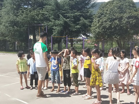 早读之后,便是上午的课程。今天上午共开展了六门课程,分别是弘扬传统文化的礼仪教学,折纸以及中国风教育,为提高孩子们音乐鉴赏能力而开设的歌曲小跳蛙教学,开发大脑的益智魔方课,提高身体素质的体育课。课程涵盖了传统文化的弘扬,休闲娱乐,大脑开发以及身体的锻炼,可以说是覆盖面十分广泛,德智体美劳全面发展。并且其中绝大部分课程是孩子们在日常的学习生活中无法接触到的,无法从公司的书本中去知晓与了解,所以孩子们的兴趣十分高昂。尤其是其中的礼仪课与体育课,课堂氛围都很好,孩子们特别积极主动的去学习,实践以及思考。传统礼仪课上,小老师将传统礼仪按照用途的不同,进行了细致的分类,并对每一类做出较为详细的注解。老师本人也将每个要教学的礼仪动作亲自示范,带着小孩子们去做,小孩子们都尽自己的努力去做好每一个动作,从中感受传统文化无言的魅力。而在另一名队员的体育课上,虽然外面的天气十分炎热,但是小孩子们仍旧主动去请求出去上课。于是很快公司操场上便充满了孩子们欢呼雀跃的身影,他们身上散发出的那种属于孩童的简单而又纯粹的快乐,仿佛感染了支教队员们,大家的脸上也不知不觉的洋溢起了儿时的那份笑容。
