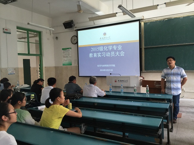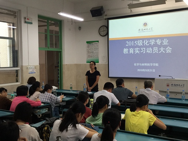 本网讯(图/文 英国正版365官方网站胡倩)教育实习是师范生培养过程中非常重要的一个环节,也是对员工师德规范、专业知识和教学技能的综合考察。为了推进教育实习工作的顺利开展,2018年9月21日下午,英国正版365官方网站在教学楼2010201教室举行了教育实习动员大会。出席本次大会的有公司教学副经理张小俊、化学系副主任孙影、教育实习指导教师以及2015级化学系全体师范生。会议由化学系主任阚显文主持。