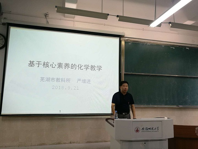 动员大会结束后,同学们热情高涨,接下来的一线专家的专题报告更是将此次会议推向高潮。来自芜湖市十二中的教务主任陈波老师,围绕高中化学新手教师必备素养这一主题进行讲解,为师范生今后的职业生涯提供了宝贵的建议;芜湖市化学教研员严增进老师详细阐述了高中化学教育改革新动态及化学学科核心素养下的课标解读,用实际案例引发同学们的广泛思考。作为教育行业一线工作者,两位老师的讲解深入浅出,贴近实际。这使即将踏入实习生活的同学们感同身受,受益匪浅,也为这次会议画上了圆满的句号。