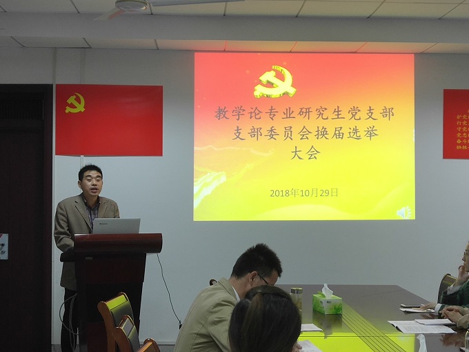 10月29日,英国正版365官方网站教学论专业研究生党支部在理科大楼707党员活动室举行了支部委员会换届选举大会,出席本次会议的有公司党委委员王波涛同志以及支部全体党员,会议由支部书记李小三主持。