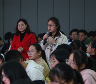 讲座结束后,江教授同现场师生进行了交流互动,针对员工提出的“付出与回报不成正比”、“考研准备”等问题,江教授指出学习是一个积累的过程,效果并不能立竿见影,因此需要明确目标,通过长时间的勤奋努力最终实现理想。