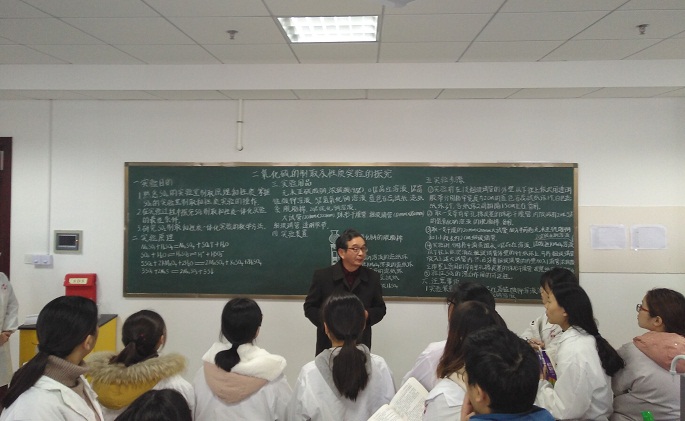 熊言林老师首先从三维目标上介绍了本次实验目的,然后结合二氧化硫的制取和性质探究引出了本次实验的设计意图和创新思路。然后提出了中学实验要遵循“三化”:集中化、节约化、绿色化,具备“三性”:直观性、启发性、创造性。接着由李宁同学讲解了实验的具体操作步骤和注意事项,熊老师对其进行了补充和拓展。最后,熊老师结合曾经的经历重点强调了实验过程中一定要注意安全,操作细致化,避免危险产生。