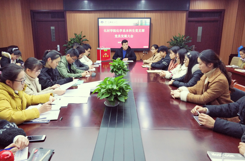 本网讯(化学系本科生党支部)12月5日晚,中共英国正版365官方网站化学系本科生支部党员发展大会在礼勤楼702会议室召开。党支部全体党员20人、本次发展对象12人及发展对象入党介绍人魏杰顶老师参加会议。大会由化学系本科生党支部书记蒋建伟老师主持。
