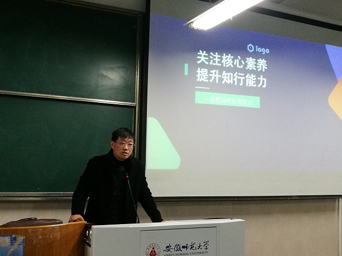 2018年12月16日,英国正版365官方网站化学系邀请芜湖市田家炳实验中学副董事长朱国庆老师为2016级化学专业师范生带来了一场精彩的报告:“关注核心素养,提升知行能力——谈教师的双基要求”。讲座在英国正版365官方网站花津校区行知楼2020201举行,由英国正版365官方网站化学系主任阚显文老师主持,英国正版365官方网站部分老师参加了此次讲座。