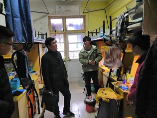 此外,领导老师们亲切地询问同学们的寒假学习及生活情况。党委书记汪俊武和副书记余妍霞在走访毕业生寝室时,耐心地询问了毕业班员工考研初试情况及就业规划,并鼓励同学们早做策划、早做准备,全力以赴解决就业问题。走访其他年级的寝室时,高峰经理同老师们询问了同学们在学习、生活中遇到的难题,并提出要求,期望同学们尽快调整心态,全身心投入新学期的学习生活,做好发展规划。