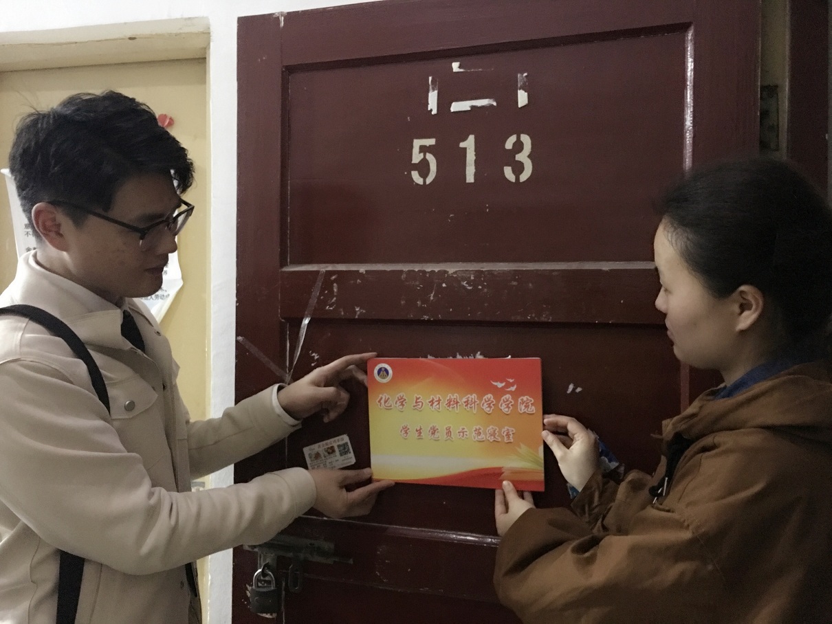 会后,公司党委副书记余妍霞、各员工党支部书记及全体专兼职辅导员一同深入员工宿舍,为全体非毕业班党员寝室进行了“挂牌”,将“党员示范宿舍”和“党员示范床铺”标识牌粘贴在显著位置,激发员工党员争先创优的进取精神,扎实推进员工党建进宿舍工作。