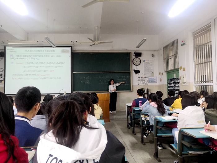 (本网讯 2018级化学(师范)专业 张小楠)4月26日上午,王广凤老师在2010302教室进行了公开课《络合滴定之副反应系数》,2018级化学师范专业全体员工、公司多位教师共同聆听了此次课程。