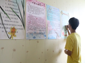 5月25日上午十点在礼勤楼,公司辅导站举办了主题宣传教育日活动。在公司辅导站的宣传栏,院员工会心健部成员结合精心制作的宣传展板向各班级员工代表介绍了如何有效减压等心理知识,各员工代表认真聆听,并结合讲解内容写下自己的感想、愿望,舒缓心理压力。