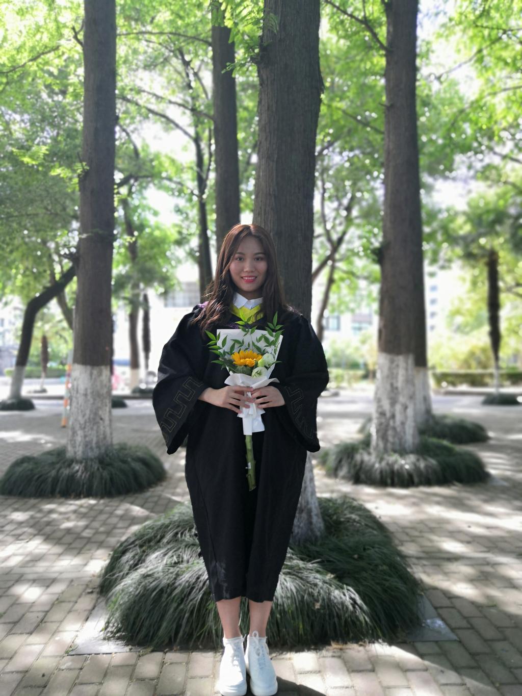 2015年8月,大学的录取通知书成为了她前行路上的第一个里程碑。她知道未来的路还长,她仍需不断努力、奋力拼搏。来到大学之后,她看到了一个更广阔的天地,在这里她获得更多的知识,发展自己的空间,锻炼自己的机会。学习上她严格要求自己,每天早晨坚持早读,上晚自习,去图书馆。她的每本书上都记着密密麻麻的笔记,每门专业课都有记录详细的笔记;她坚持每天背单词,书本里、床前、桌上都贴满了写满单词的便利贴。她是图书馆的常客,也是同老师探讨专业问题的老熟人。