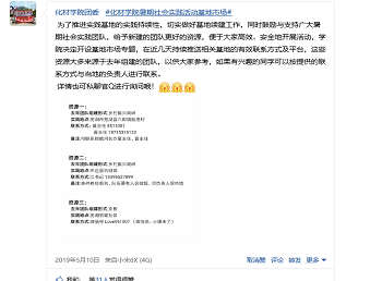 团队建设,基地是关键。近水楼台先得月,公司高度重视实践基地的重要作用。在公司层面,领导班子、专业教师、辅导员群策群力做好基地的推荐、联络,续建了马鞍山锐生工贸有限公司、阜阳新乌江镇中心公司等一批友好基地。从个人层面,公司注重新老传带作用,在激活新队长积极性的基础上,成立了网络“基地市场”,将往年优质的基地资源推介给新队长,续建了芜湖泊庄丽城社区、王家坝镇程成公司等一批基地。