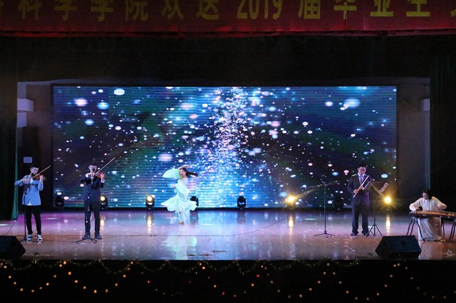 繁花似锦,初心依旧。毕业班辅导员蒋建伟、魏杰顶,毕业生代表刘茹等带来的节目《青春、梦想、责任》用优美的歌声倾述离别之情,用师生问答细说着心中的情感。一条大河波浪宽,风吹浪花香两岸,管毓宇华、院大艺团用柔美的舞姿为祖国献礼,为观众带来了流淌着爱国情怀的《一条大河》。最后,院大艺团带来了合唱《告别时刻》,孙益民老师和同学们完美收官,用悠扬的歌声代表毕业生告别同窗、告别老师、告别校园、告别青春,为毕业生送上了母校最诚挚的祝福。