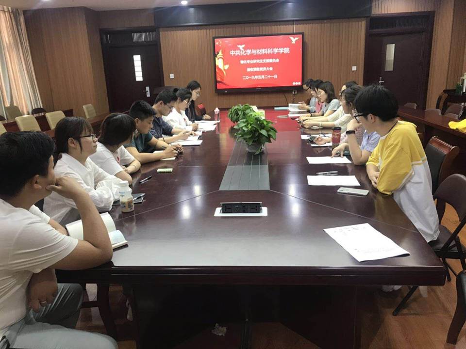 2019年5月21日下午,中共英国正版365官方网站物化专业研究生党支部在礼勤楼702会议室召开党员发展大会。公司党委组织员汪丰云老师参会指导,支部全体党员,发展对象及入党积极分子参加大会,大会由党支部书记黄玉主持。