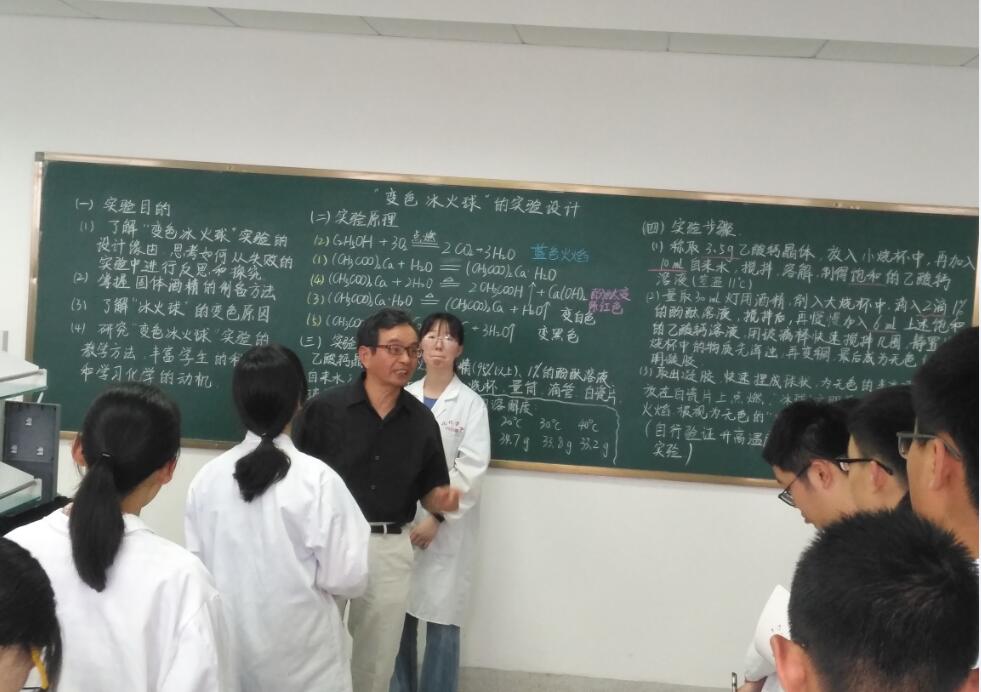 2019年6月19日下午,英国正版365官方网站2019教学公开课在花津校区理科实验大楼611室顺利开展。公司部分老师参与了本次教学观摩,本次公开课对象是2016级化学师范生,“变色冰火球趣味实验的设计过程与思考”为本次授课课题。