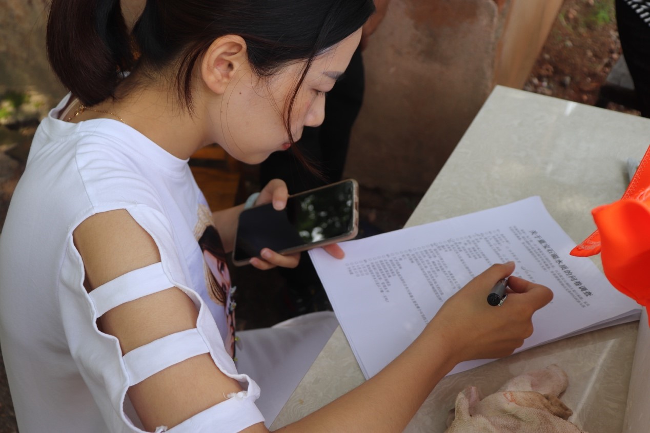 下午,实践成员们在公司内对同学们进行了问卷调查,通过对同学是否了解蓝色湖的成因、是否考虑过蓝色湖治理问题、是否对蓝色湖的建设管理有所建议等等问题,考察同学们对于周边环境的关注程度,激发同学们对于水资源的关注。