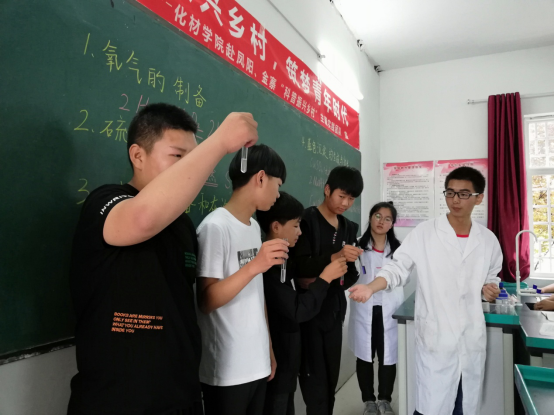 在城市化的大背景下,农村年轻人口流失严重,与之相伴的是乡村公司入学儿童人数的减少。但是出乎全队成员意料之外的是,位于小岗村镇中心的小岗村公司基础设施建设良好,不仅生源充足,设备齐全,而且整个公司让员工们享受到高水平的素质教育。公司从以前老团队源不足到现在配备齐全的国家在编教师。在与公司骨干教师交谈的过程中,团队成员各抒己见,分享各自在学习上的心得和经验。在走访小岗村中学过程中,团队成员了解到,公司在十年前面临着生源大幅减少的问题,但小岗村政府深知青年才是村里未来的希望,出台相关政策激发了青年教师来到小岗中学教书育人的热情,大大提高了当地教育水平,并在今年取得新的突破——中考成绩取得凤阳县中学全县第三!为了进一步激发同学学习知识的热情,支队成员给同学们带来了一场别开生面的化学科普小课堂,在他们幼小的心灵里埋下了希望的种子!