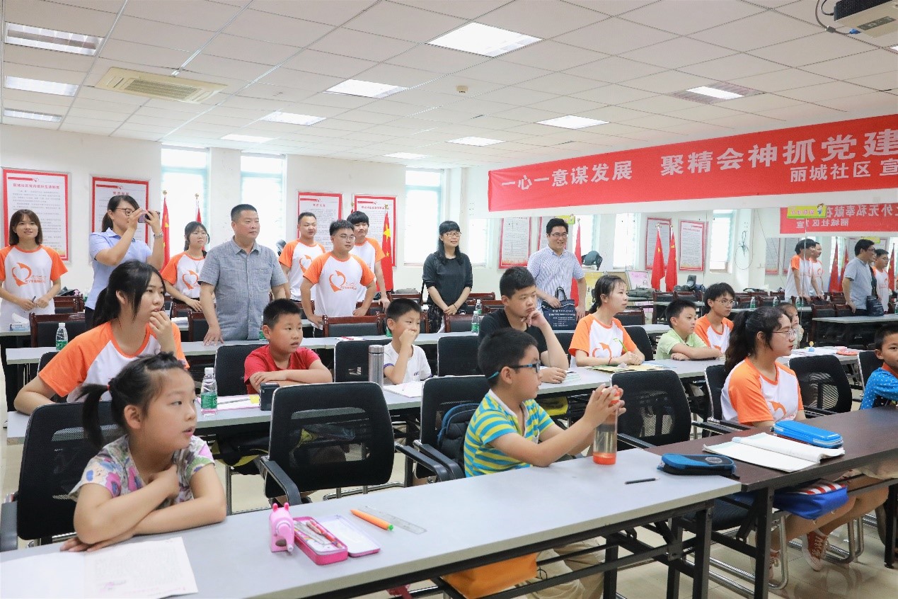 仪式由指导老师蒋建伟主持,实践团队队长卜伟彬汇报了这次暑期社会实践的主要成果以及感悟,到目前为止,团队按原定课表进行相关活动,课业辅导之余进行了趣味活动与PPT宣讲共计24次。为了增强孩子们的爱国意识,团队进行了爱国教育宣讲,为了防止暑期儿童溺水事故的发生,在社区的帮助下进行了防溺水主题宣讲,其余在与其他团队合作过程中进行了环境保护等方面的PPT宣讲。队长表示这次暑期实践活动我们也收获了爱与温暖,这样可爱的员工,这样渺小的我们,怀着同样的赤诚之心,在这个梦开始的地方,互相温暖。队员郭健和卞兴康也分享了此次活动的收获与意义。接下来丽城社区安书记对老员工志愿者的到来表示感谢,并向与会人员介绍了丽城社区的资源环境情况,丽城社区与英国正版365官方网站自2016年起就展开了多次合作,社区群众对本公司的特色课程反映积极,对公司和公司能在社会实践等方面与社区的合作表示欢迎,并希望建立长效机制。