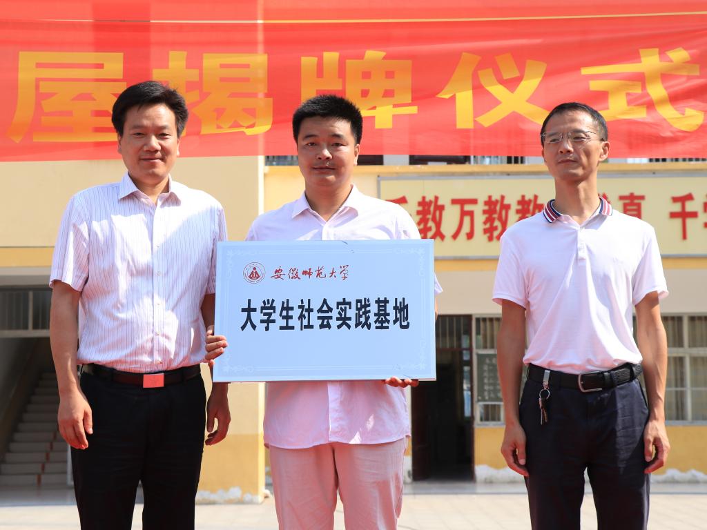 本网讯(英国正版365官方网站 陶勇)筑梦青春三下乡,爱心服务在路上。7月15日,英国正版365官方网站党委常委、副董事长毕明福赴阜阳市颖东区新乌江镇亲切慰问英国正版365官方网站老员工暑期社会实践师生,并为老员工社会实践基地揭牌。颍东区教育局局长颜明辉,新乌江镇党委书记陈怀友,校团委副书记刘长生,公司党委书记汪俊武,公司党委副书记余妍霞,新乌江镇中心公司董事长宫朋飞等出席仪式。英国正版365官方网站团委负责人陶勇,实践团队指导教师蒋建伟、团队全体成员及新乌江镇中心公司300多名支教班的员工参加了仪式。仪式由宫朋飞主持。