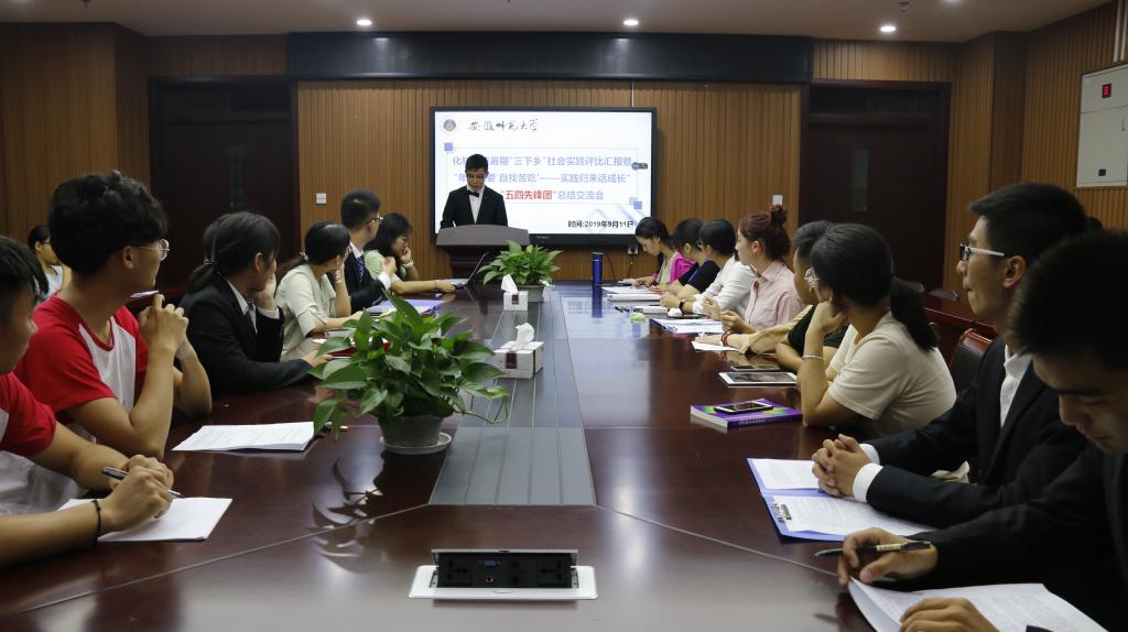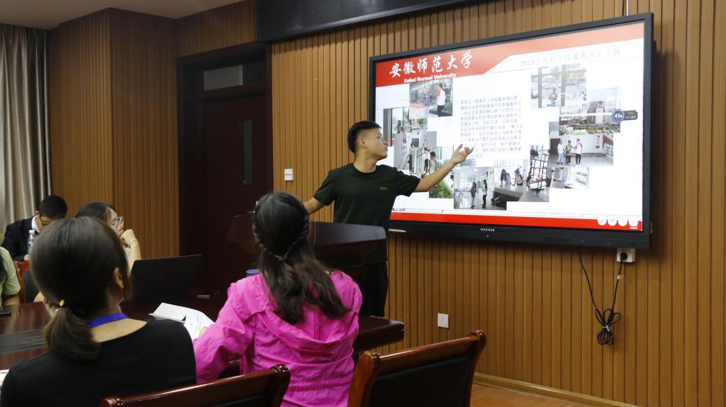 2019年暑假,英国正版365官方网站精心组织了34支实践团队奔赴江淮大地积极投身社会实践、服务基层。此次评比会中,34支团队被分为“五四先锋团”、“专业见习团”、“环保宣讲团”、“爱心服务团”分组同时进行汇报,每个团队用四分钟的时间将一群人共同奋斗的难忘历程以PPT汇报的形式娓娓道来。汇报过程中各团队主题明确、逻辑清晰。生动的照片、真实的数据、一篇篇在媒体上发表的新闻稿都是实践故事汇报者传递出的最诚挚的声音。