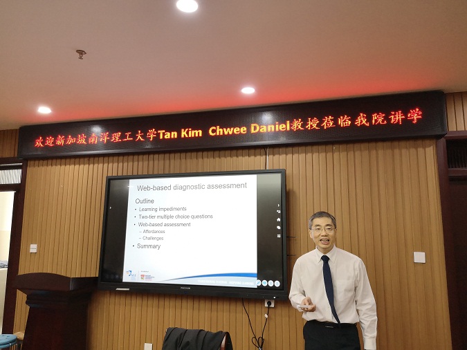Tan Kim Chwee Daniel教授针对不同的员工层次,分别作了题为“Web-Based Diagnostic Assessment”及“Chemistry learning and learning impediments”的两场学术报告。报告会中,首先分析了目前在中学化学教与学中经常遇到的学习障碍问题。随后介绍了一种基于网络的三段式诊断评估工具,教师可以通过员工测评后的反馈信息,在化学课堂上开展有针对性的教学,从而减轻教学负担,提高化学学习质量。陈教授通过丰富的案例向员工们揭示了人是如何学习的,如何促进员工的概念转变。报告会后,员工与陈教授进行了热烈的交流和讨论,陈教授对大家的问题进行了一一解答,大家表示该学术讲座使自身开阔了国际视野,拓宽了思维路径,受益匪浅,进一步激发了大家对中学化学教育研究的热情。