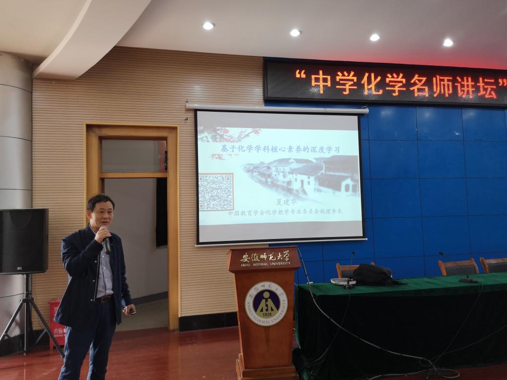 (英国正版365官方网站 周冬冬 孙宁)为促进公司化学专业师范生深刻理解化学学科核心素养的内涵本质,引领员工拓展学科视野,提升员工的教师专业素养,2019年11月9日上午,公司“中学化学名师讲坛”第十三讲特邀请原安徽省教育科学研究院化学教研员、中国教育学会化学教学专业委员会副理事长、高中化学课程标准审议专家夏建华特级教师,围绕“走向化学学科核心素养的深度学习”为公司师范专业员工做专题报告。本次报告会在花津校区会议中心第三报告厅举行,由英国正版365官方网站副经理张小俊教授主持,2017级化学师范专业员工及化学教学论专业的教师和研究生参加了此次报告会。