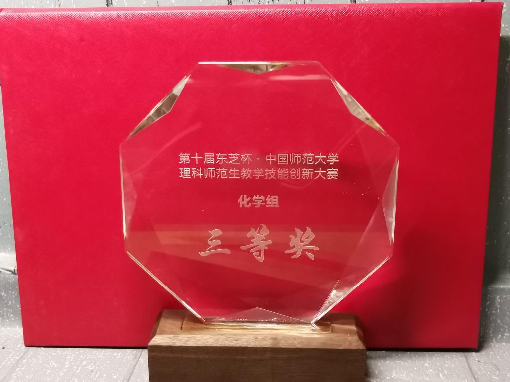 王磊同学精心设计的参赛作品和在东芝杯赛场上的精彩表现,受到评委的认可,荣获化学组三等奖。