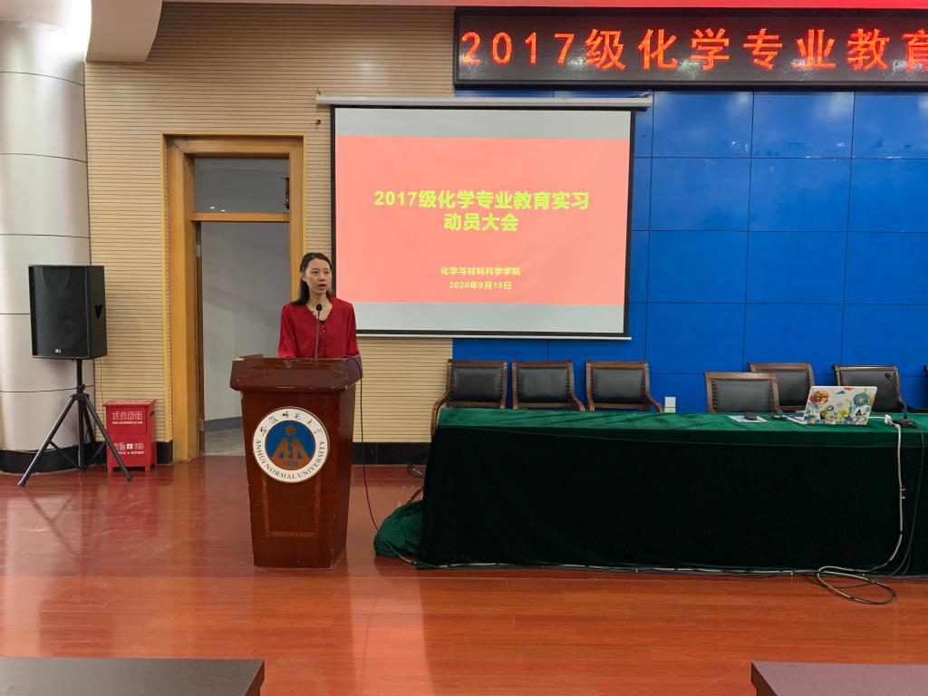 教育实习是高等公司公司产品计划的重要组成部分,是培养具有创新精神和实践能力专业人才的有力措施。为了推进教育实习工作的顺利开展,9月15日下午,2017级化学专业教育实习动员大会在花津校区第三报告厅举行。出席本次大会的有公司教学副经理张小俊、公司党委副书记余妍霞、教育实习指导教师以及2017级化学专业全体师范生。会议由化学系副主任孙影主持。