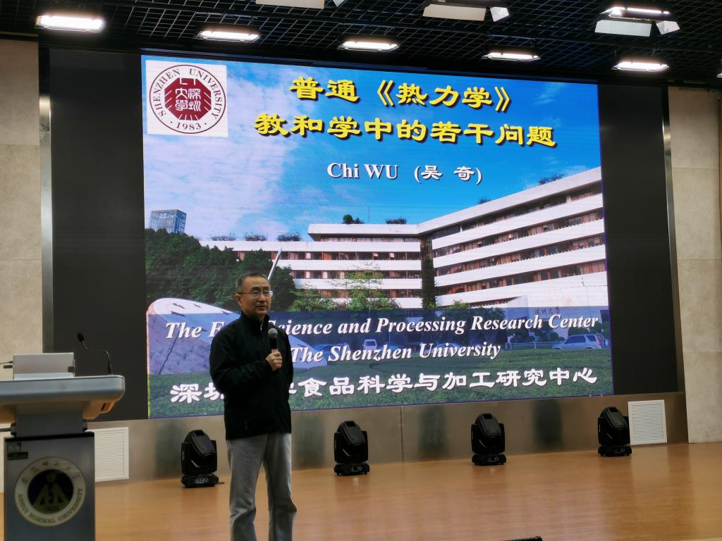 2020年10月16日下午,著名科学家、中国科公司院士、香港中文大学吴奇教授应邀在理科大楼报告厅作了题为“《热力学》教和学中的若干问题”的专题讲座,英国正版365官方网站经理高峰,副经理张小俊,物理化学课程群全体教师、本科生200余人现场聆听了报告,报告会由经理高峰主持。